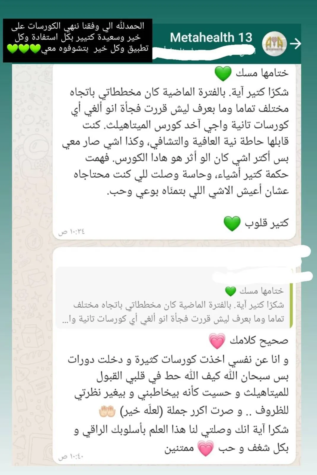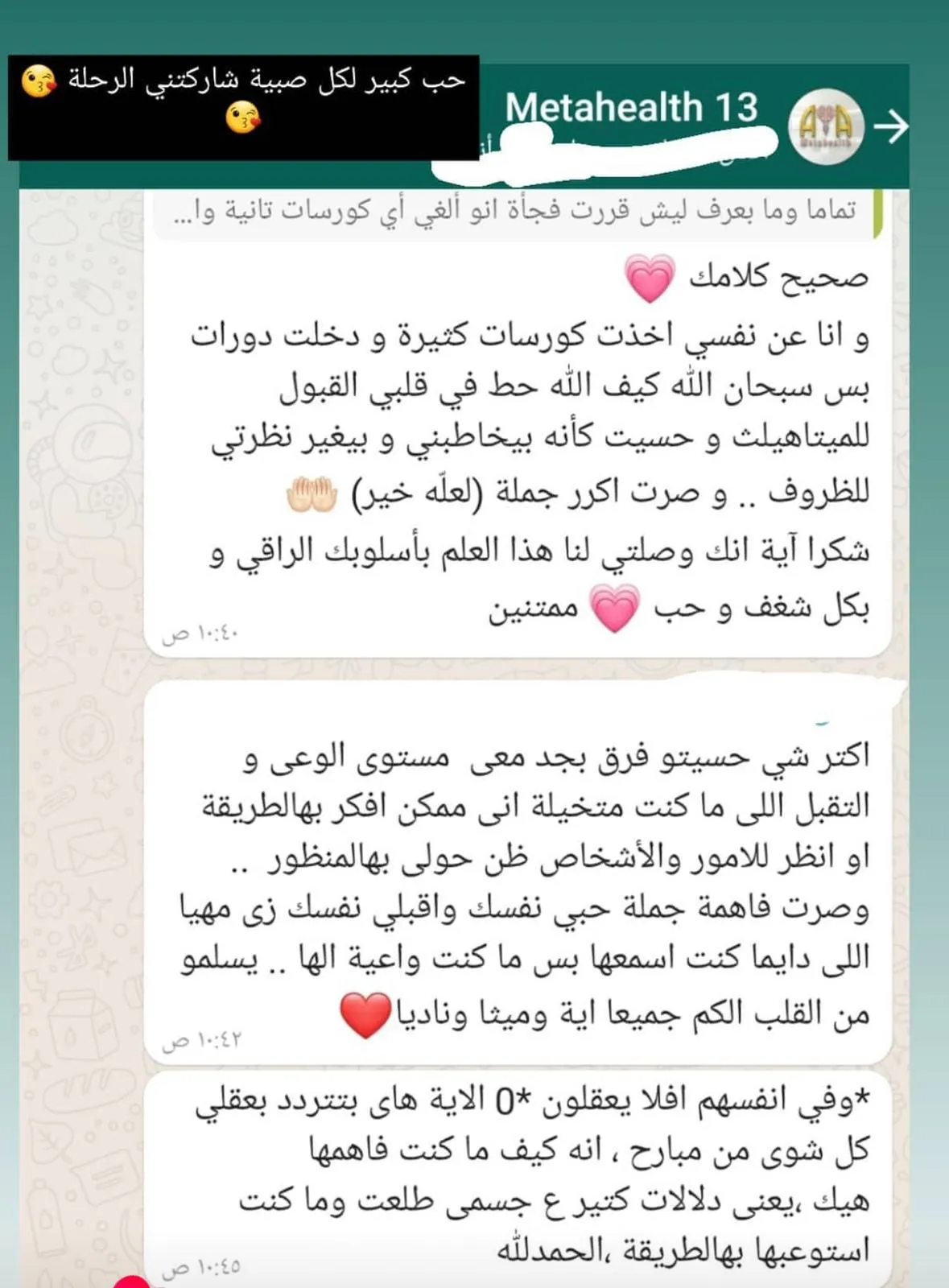 رسالتي جمعتها كخميرة عطرية عبر السنين ..هدفها الاتصال الواعي بين الروح والنفس والجسد لأني أؤمن أن الإنسان كتلة متكاملة الأركان.. جمعت خلال مسيرتي المتواضعة دراسات أكاديمية في الصيدلة وعلم النفس،وأضفت عليهم علم الميتاهيلث التشخيصي الذي يربط الجسد بالنفس والصدمات.. مع علوم متنوعة من العلاج بالفن ودبلوم تعديل السلوك والكوتشينغ والأهم شغفي بالتدبر والبحث في القران الكريم لإيماني بأنه الدستور الأهم والأشمل .. رسالتي في هذه الحياة أن أساعدك وألهمك لتتعلم رسائل وآيات الله المختلفة حولك..بدءا من نفسك أولاً لتزكي نفسك وتعيدها لفطرتها فتتذوق نعيم ولذة القرب من الله